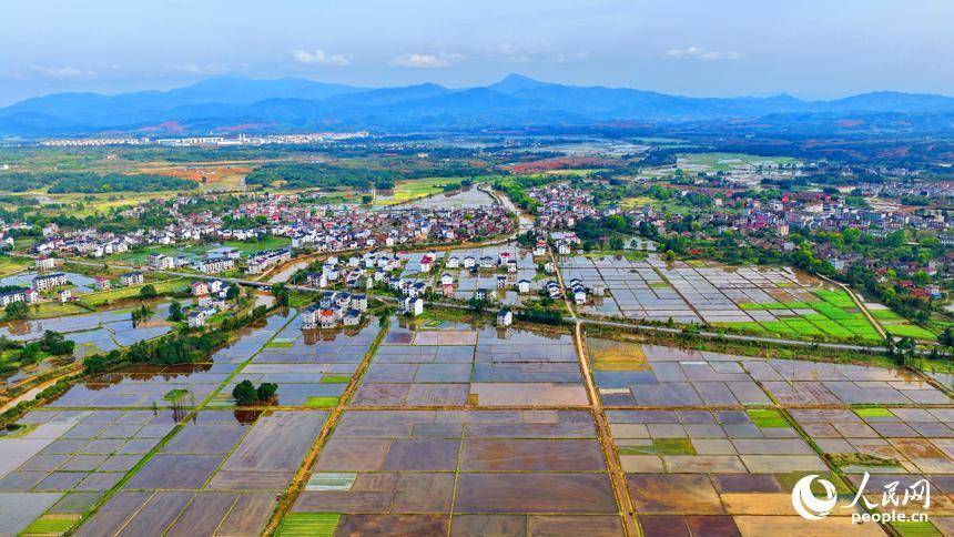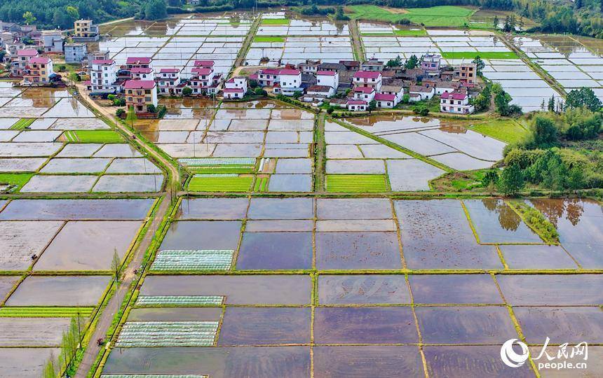 乐安县龚坊镇陀上村一带,灌溉打浆后的农田与蜿蜒的灌渠、错落有致的房屋、纵横交织的公路相互映衬,美如画卷。人民网记者 朱海鹏摄人民网乐安4月8日电 (记者朱海鹏)4月7日,江西省抚州市乐安县龚坊镇陀上村一带,灌溉打浆后的农田与蜿蜒的灌渠、错落有致的房屋、纵横交织的公路相互映衬,构成一幅色彩斑斓的春日田园画卷。眼下正值春播春种农忙时节,引水灌溉后的农田水光粼粼,田园葱郁,乡村美景怡人。